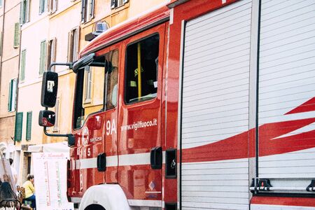 Rome Italy October 18, 2019 View of a Italian fire engine parked in the streets of Rome in the morning