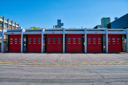 Oxford, United Kingdom - June 29 2019: The red doors of the Fire station on Rewley Road