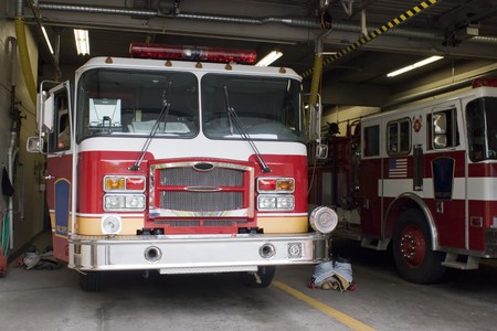 Fire engine at the fire station in New York City.