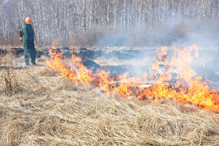 A suppression of forest fire. Early spring.