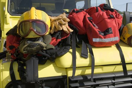 firefighter suit and equipment ready for operation.