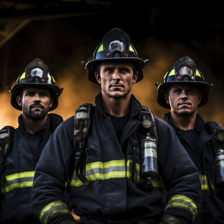 911. Firefighters at work against the backdrop of a raging flame. Emotive pictures highlighting the teamwork and unity among firefighters as they work together to overcome fire-related challenges.