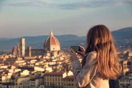 girl making a photo shoot of Florence with the smartphone
