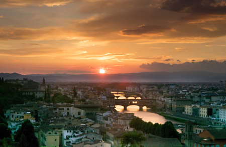 The view of Florence at sunset light. Ponte Vecchio. Tuscany. Italy.