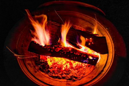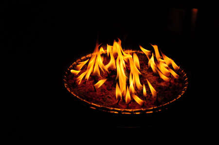 open campfire in a pan, at night. dark background