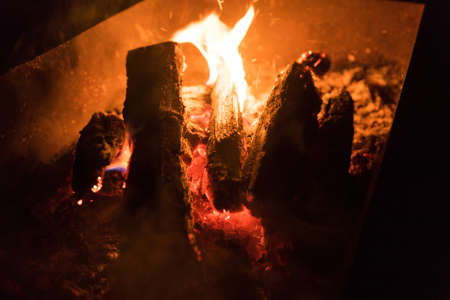Barbeque grill fire. Burning wood and coal in the grill and BBQ.