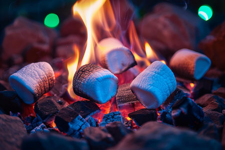 Hot marshmallows on the background of a burning campfire.