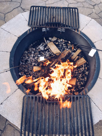 Grilling marshmallows on fire