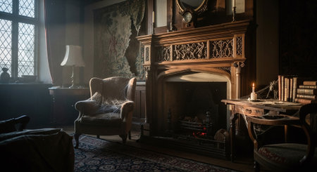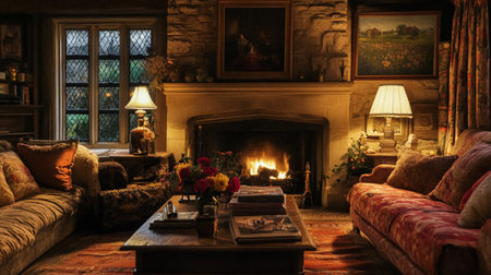 Interior of a classic living room with a fireplace and fireplace.