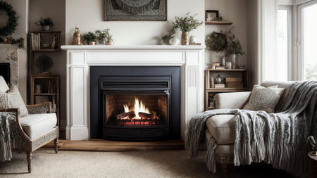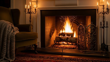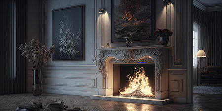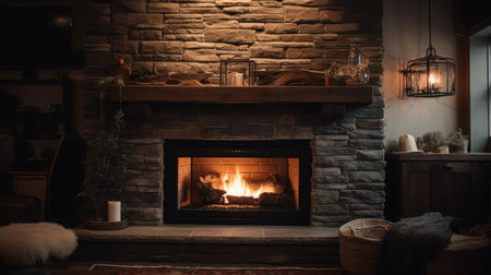 A photo of a cozy and inviting fireplace with flickering flames and warmth created with Generative AI