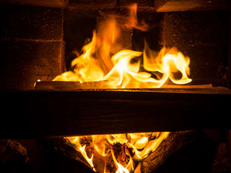 The flame of fire in the fireplace