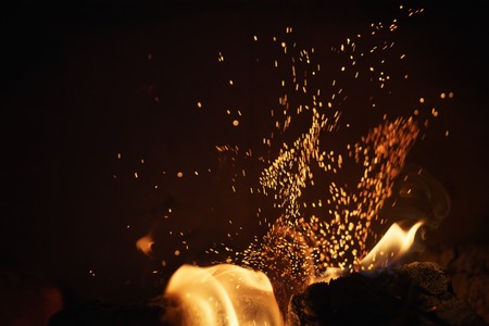 burning fire logs with sparks in the fireplace