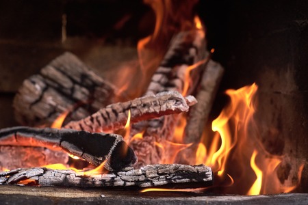 Fire in the fireplace, note shallow depth of field.close up image of fireplace and wood burning