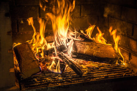 Burning wood in fire place.