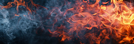 Vibrant flames and swirling smoke create an intense abstract background ideal for various media uses