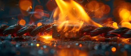 A close up of a flame with some food on it, AI