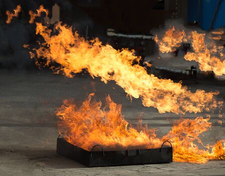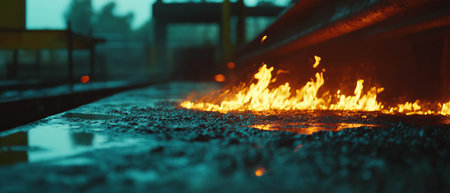 Burning fire on the floor in the train station. Blurred background