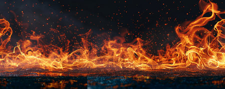 A captivating image showcasing vibrant flames rising from a surface, generating an intense and dramatic atmosphere perfect for artistic and creative use.