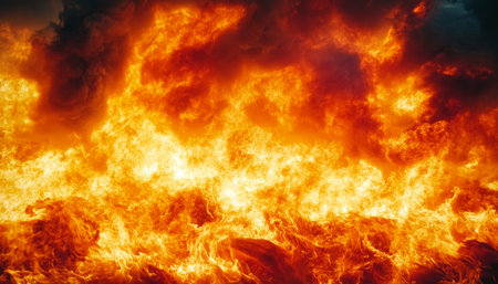 A captivating display of intense flames in vivid orange and yellow tones creating a dramatic backdrop. The energy and heat of the fire evoke a sense of chaos and power. Perfect for themes related to nature, intensity, and danger.