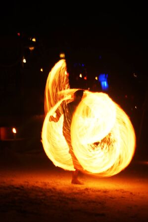 Fire show man in action on the beach