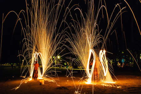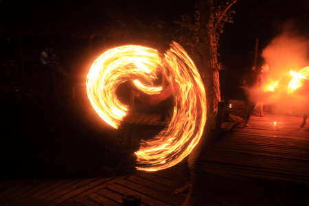 Amazing Fire Show at night on Khoa chang Island, Thailand