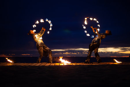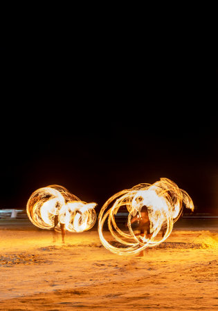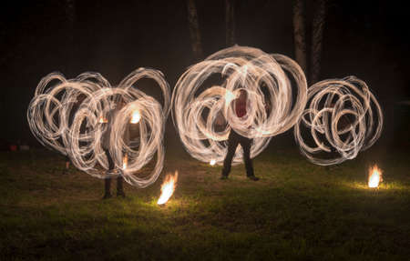 Fire dancers Swing fire dancing show fire show dance man juggling with fire.