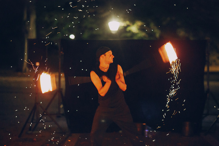 Fire show amazing at night . man and fire