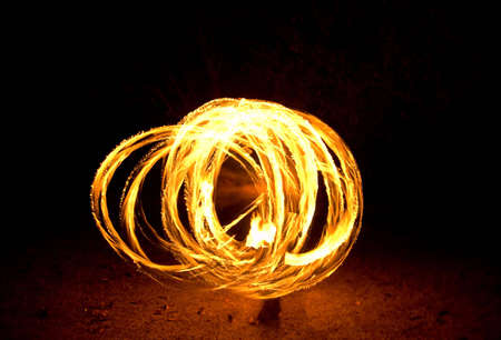 Person doing Fire Show Flaming Trails. Long exposure fire trail on a diwali fire show.