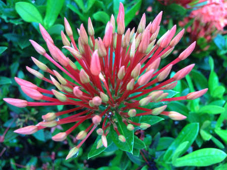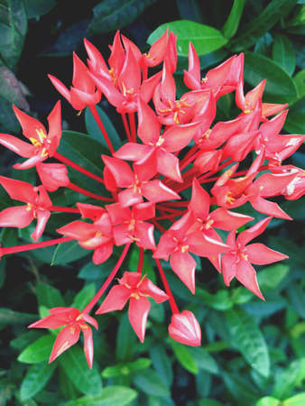 Ixora, spike flower red with in nature ( Common Name Ixora coccinea, Rubiaceae)