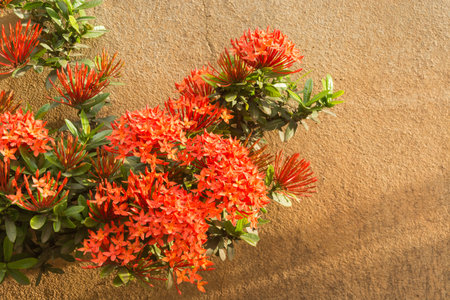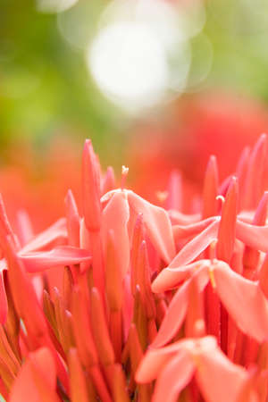 Close up of Ixora coccinea flower in the garden