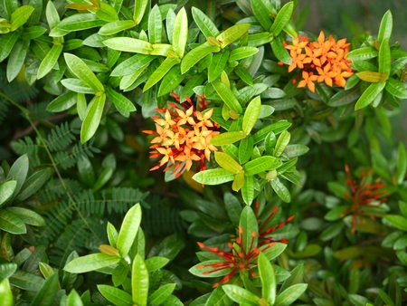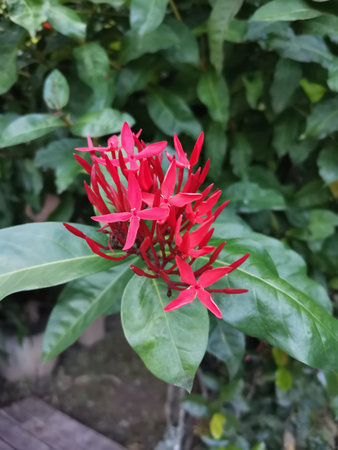 Ixora chinensis Lamk, Ixora spp or Zephyranthes or West Indian Jasmine or red Ixora or red flower