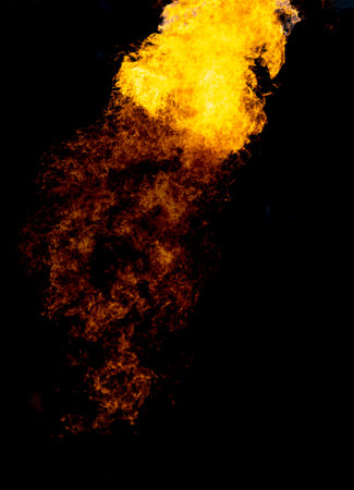 Circus fire-eater blowing a large flame from his mouth