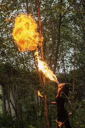 A photo of a fire breathing entertainer