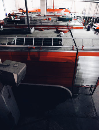 shikoku, japan - 1 oct 2025 4 fire trucks in the garage. High quality photo