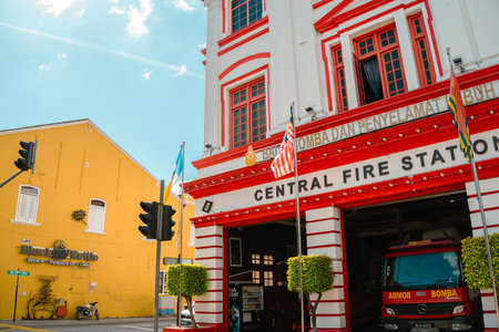 Penang, Malaysia - July 7, 2023 : Georgetown Central Fire Station 1908 museum
