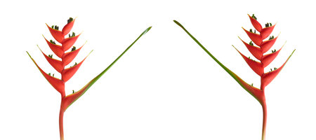 Heliconia bihai (Red palulu) flower Front and Back, Beautiful Tropical flowers Heliconia flower blooming isolate on white background