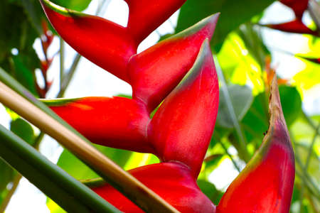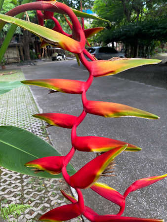 Red Heliconia flower in the garden. Beautiful flower in the garden.