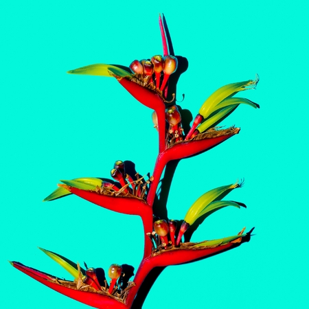 Beautiful caribbean Heliconia bihai flower, lobster claw