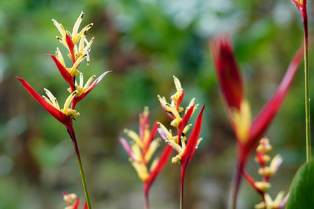 Flower Heliconia humilis genus of flowering plants in the family Heliconiaceae. Amber mountain, madagascar wilderness
