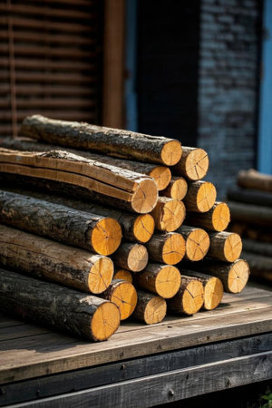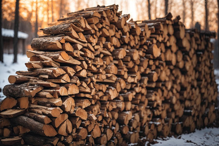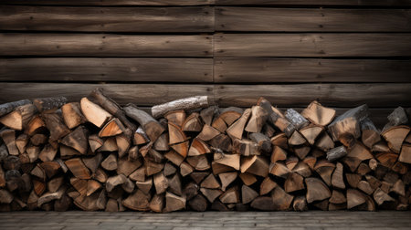 Stack of chopped wood establishment. Creative resource, AI Generated