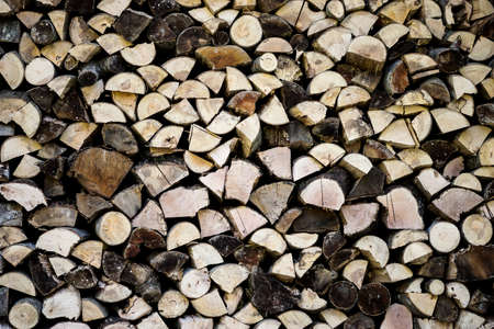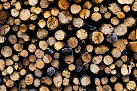 Wooden background - closeup. Firewood for the winter, stacks of firewood, pile of firewood. Firewood stacked and prepared for winter.