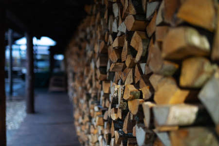 A pile of logs for firewood near the barn, Kuldiga, Latvia. Heat source for heating.