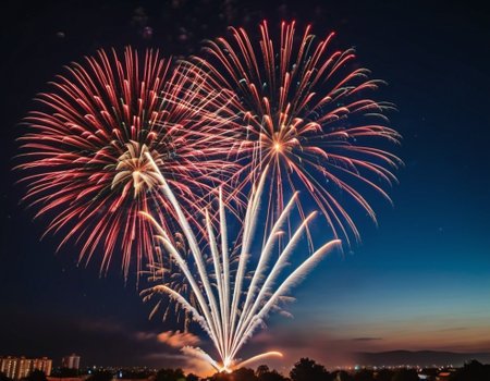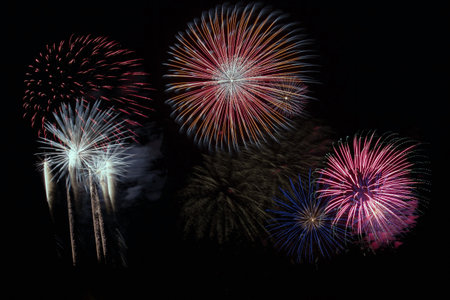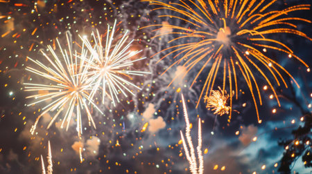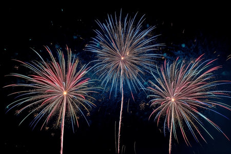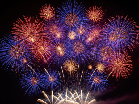 Vibrant fireworks light up the night sky, creating an exciting atmosphere. Perfect for celebrations and festive events, showcasing beauty and joy.