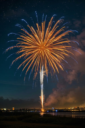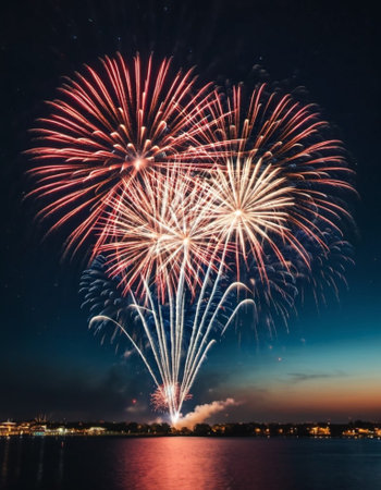 Spectacular Fireworks Display Over the Waterfront on Independence Day.