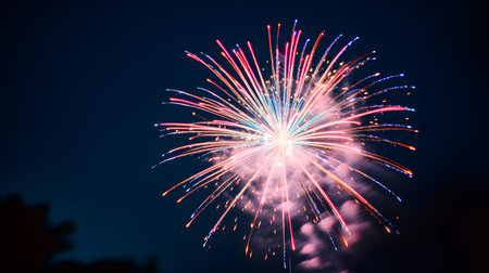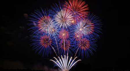 Fourth of July celebration: exploding firework display in vibrant colors generated by artificial intelligence