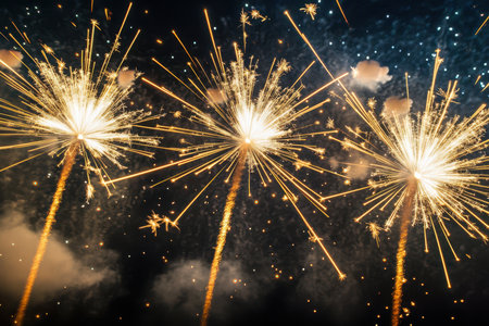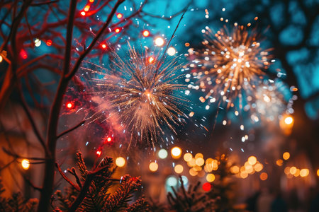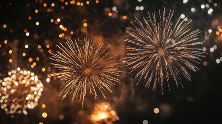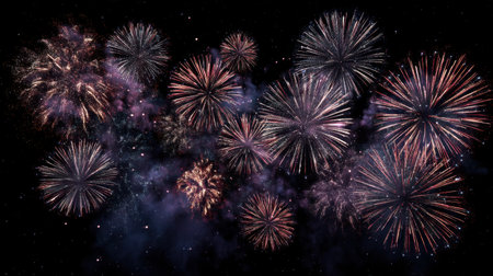 fireworks exploding against black night sky on new years eve, created with generative ai