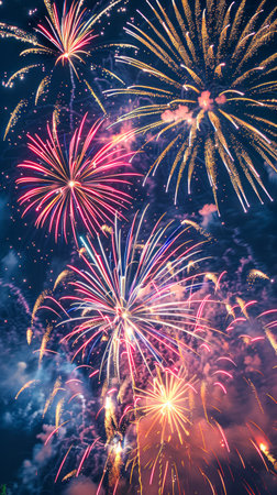 Experience the grandeur of a mesmerizing fireworks display lighting up the night sky. Perfect for capturing the essence of celebration and joy.