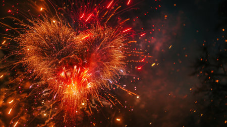 Holiday background for Valentine's Day. Decorative heart of fireworks on night sky background
