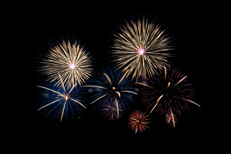 Colorful fireworks of various colors over night sky, celebration and anniversary concept
