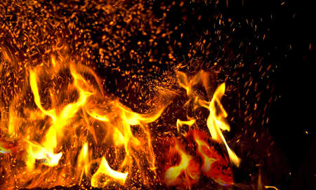 flame of fire with sparks on a black background